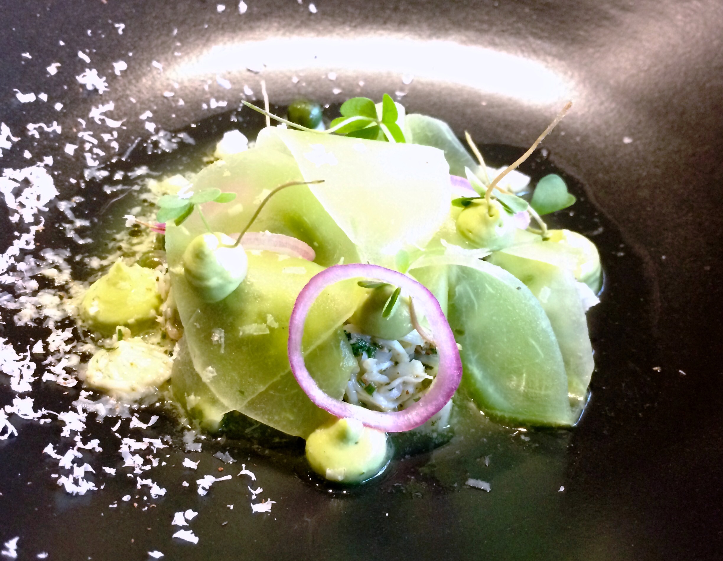 La repostería en Seneri* es otro espectáculo visual. Para los que presumen de no comer dulce, Fernando elabora un postre muy especial, un homenaje al aguacate con té matcha.