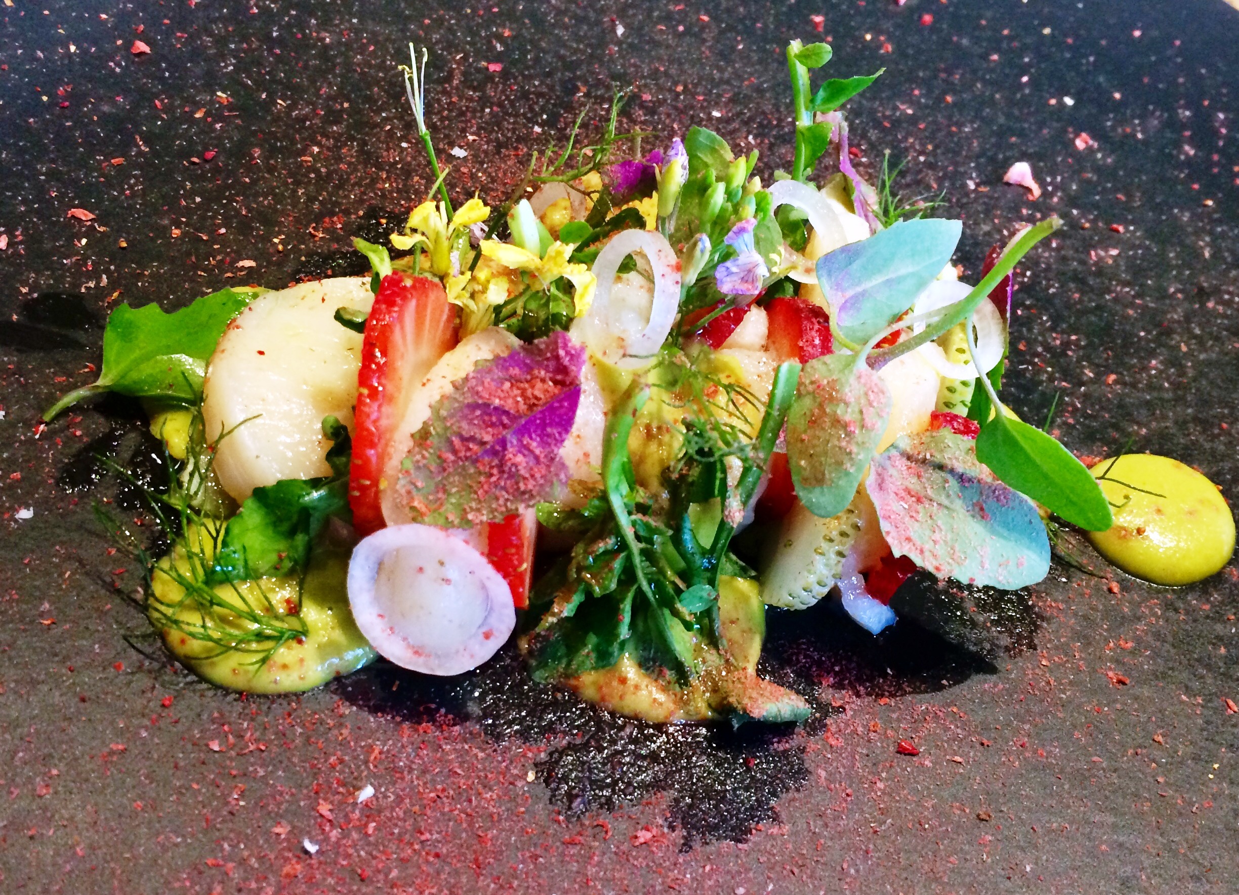 Son platos elegantes y con una destacada estética visual muy artística, repleta de color y volumen, que no ensombrece en absoluto la técnica, el sabor complejo y la sutileza en las texturas que propone en cada una de sus recetas. Las reminiscencias de su origen michoacano resaltan en cada presentación.
