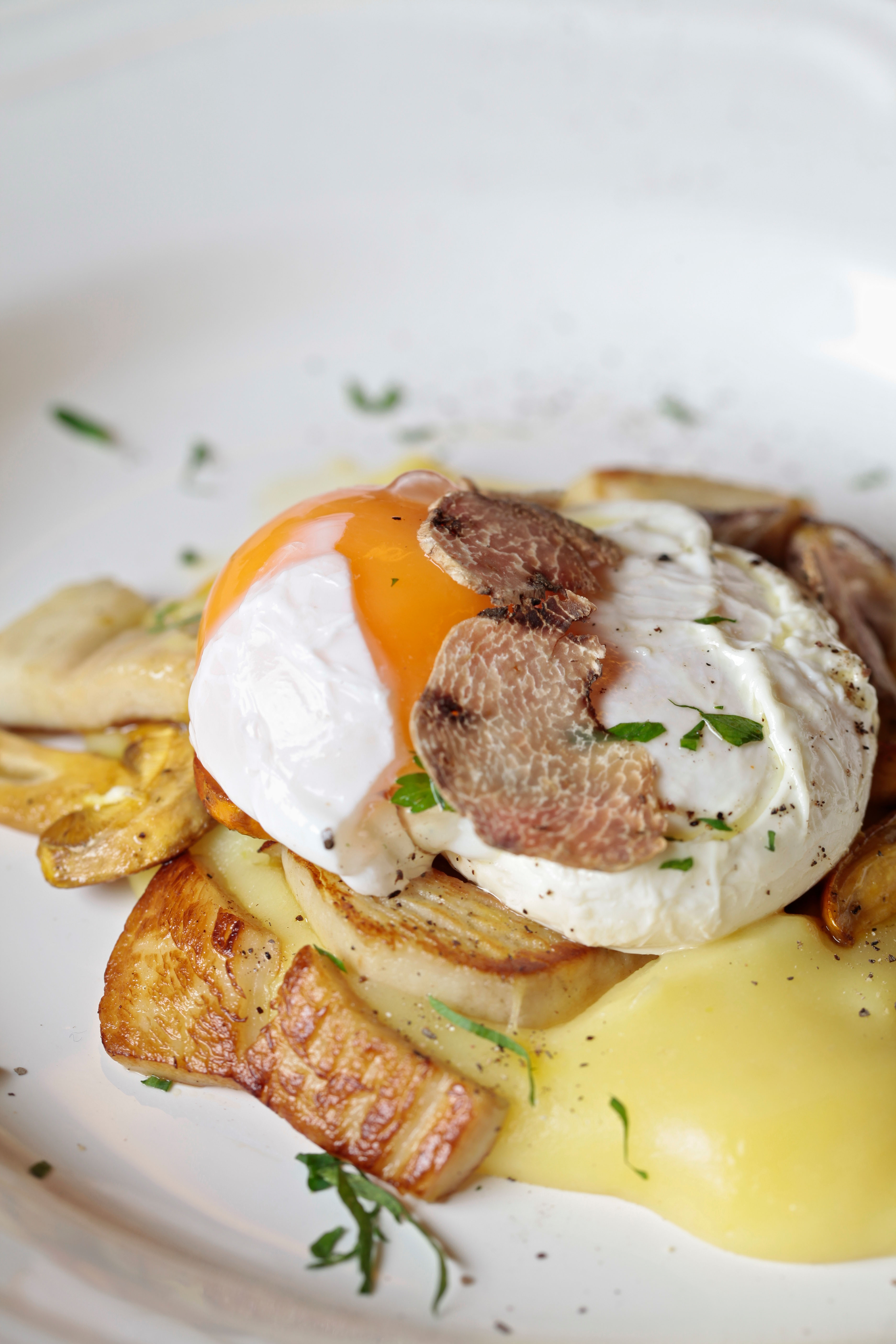 Huevo escalfado, setas, parmesano y trufa